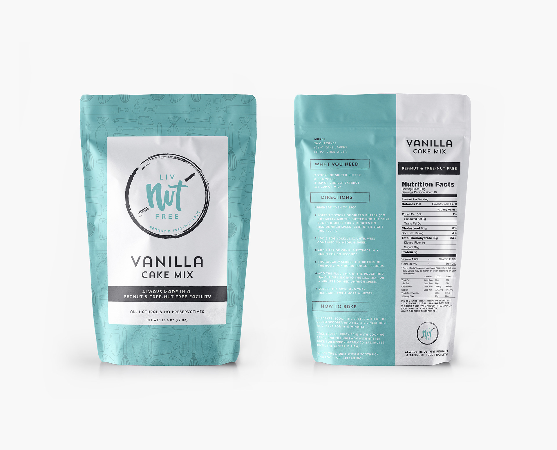 Olivia, the nineteen-year-old founder of Liv Nut Free in New Jersey first discovered my work on Instagram and reached out after falling in love with my hand lettering. What began as a logo request quickly grew into full packaging design as she launched her storefront. From the start, Olivia was adamant about featuring Tiffany blue — her favorite color and a core part of her vision. I paired my custom hand lettering with a clean sans-serif typeface to create a modern, elevated feel. She also wanted a clear nod to the brand’s nut-free promise, which inspired the circular mark that now anchors her identity.