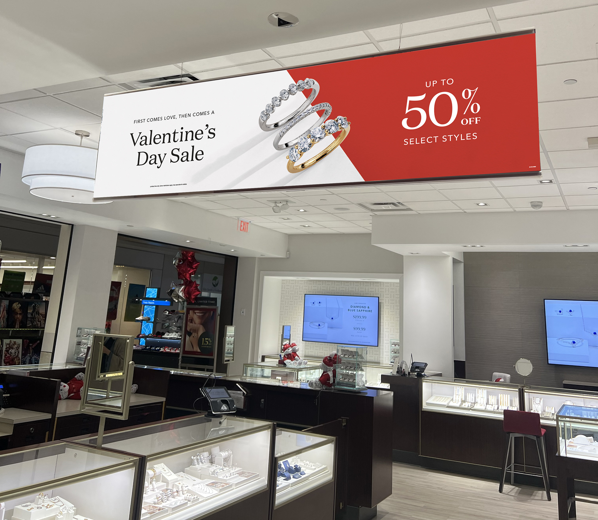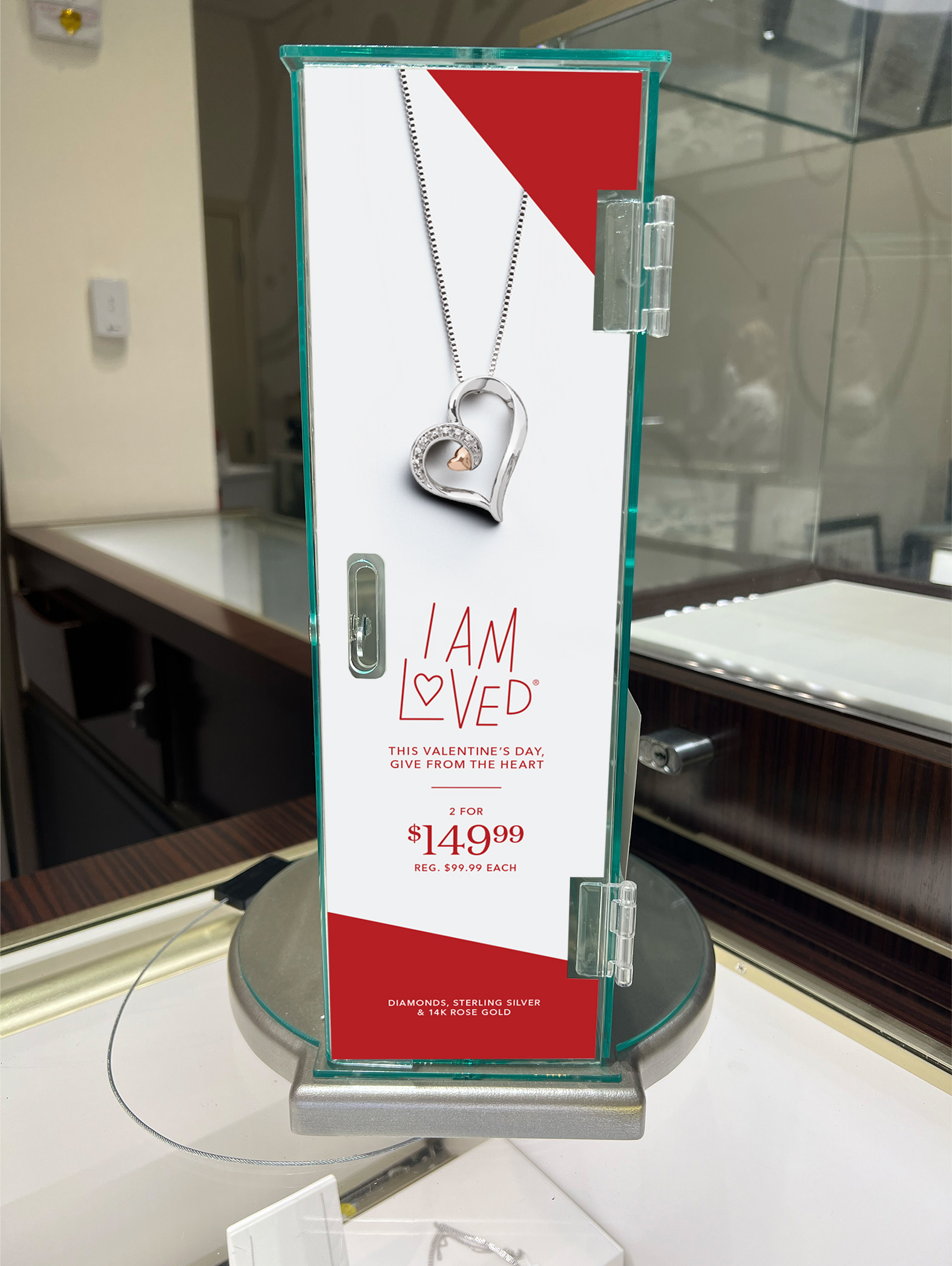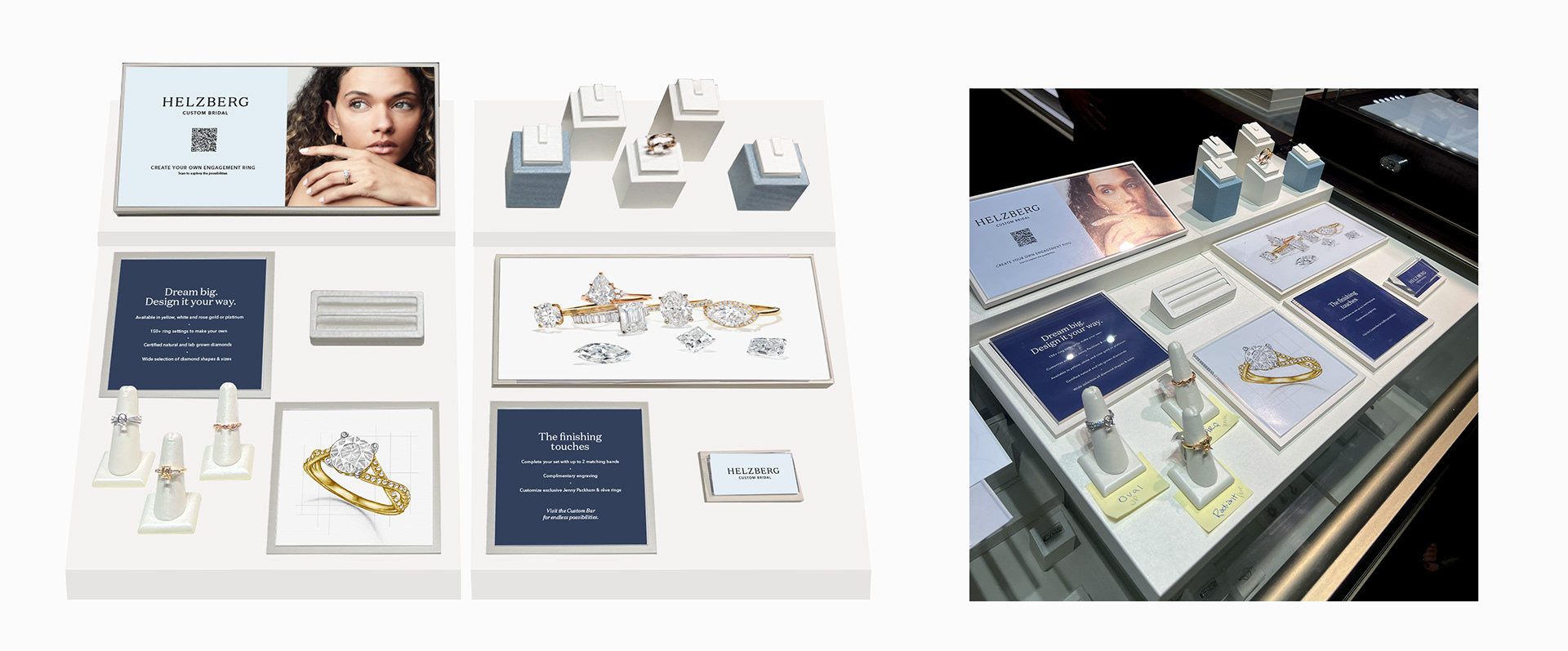 As a Senior Print Designer at Helzberg Diamonds, I lead the creation of in-store signage, from in-case displays to exterior-facing visuals, ensuring a seamless and engaging customer experience. Collaborating closely with internal teams, I guide the flow and placement of signage to optimize the customer journey. While my expertise is rooted in print, I also contribute to digital projects across email, social, and e-commerce platforms.