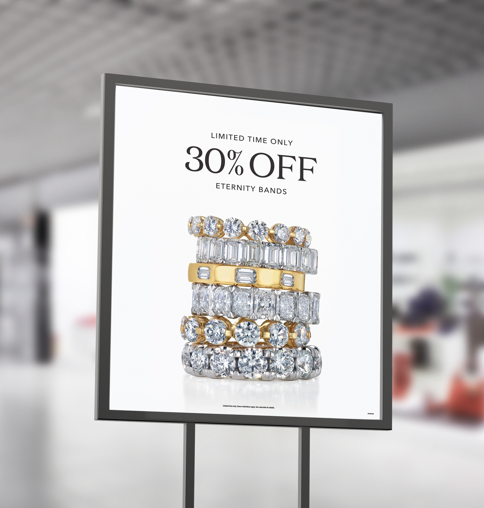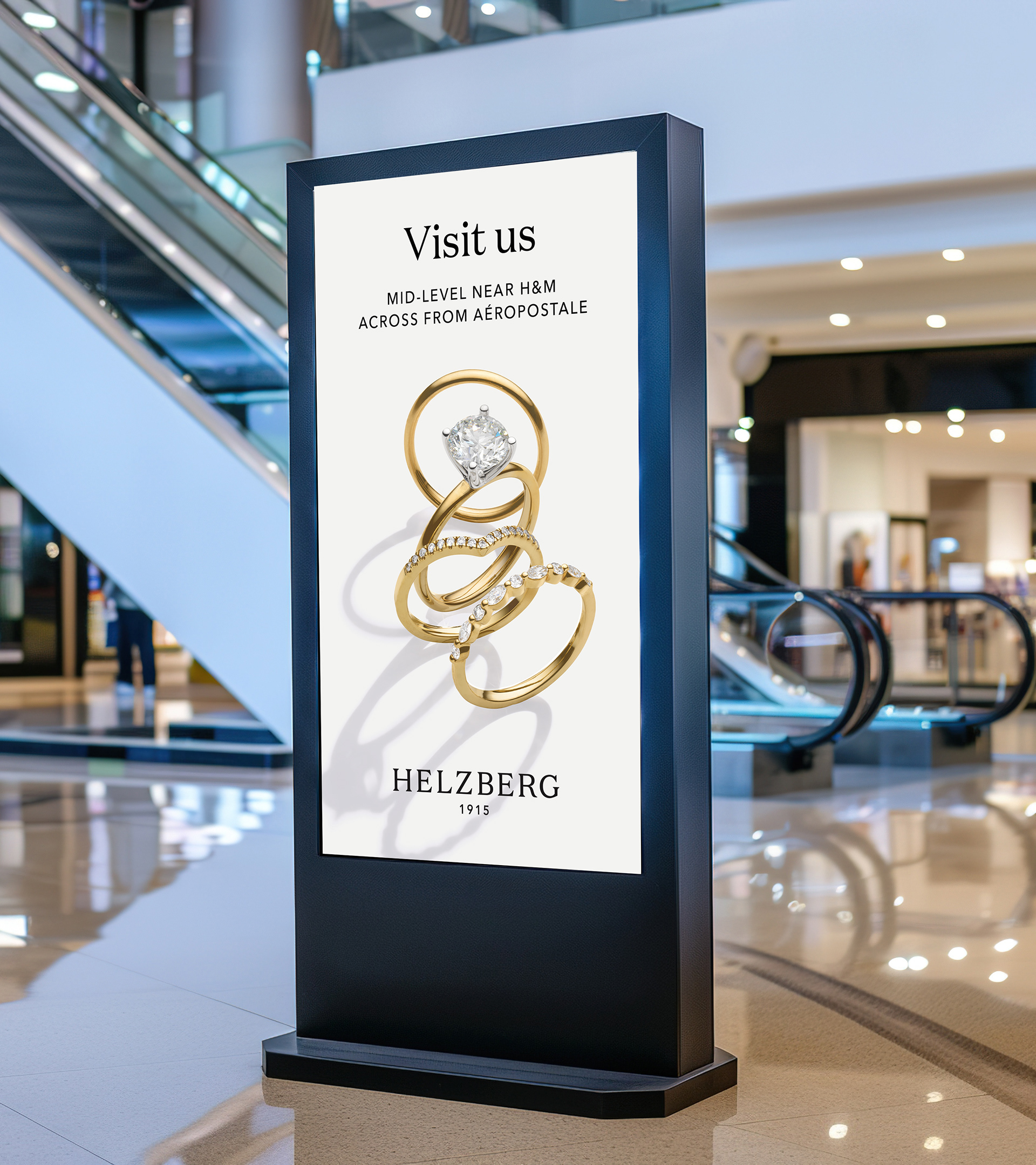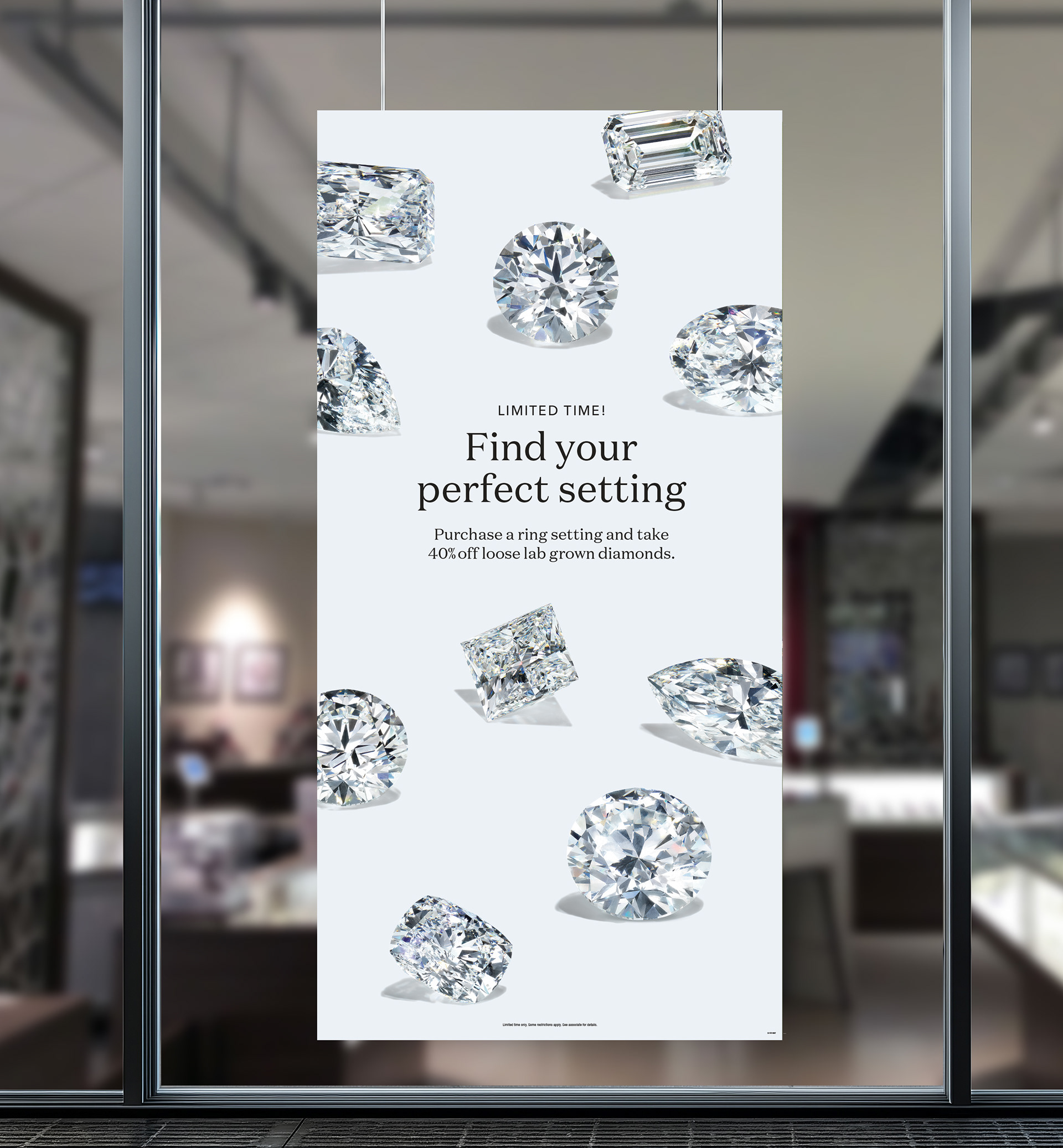 As a Senior Print Designer at Helzberg Diamonds, I lead the creation of in-store signage, from in-case displays to exterior-facing visuals, ensuring a seamless and engaging customer experience. Collaborating closely with internal teams, I guide the flow and placement of signage to optimize the customer journey. While my expertise is rooted in print, I also contribute to digital projects across email, social, and e-commerce platforms.
