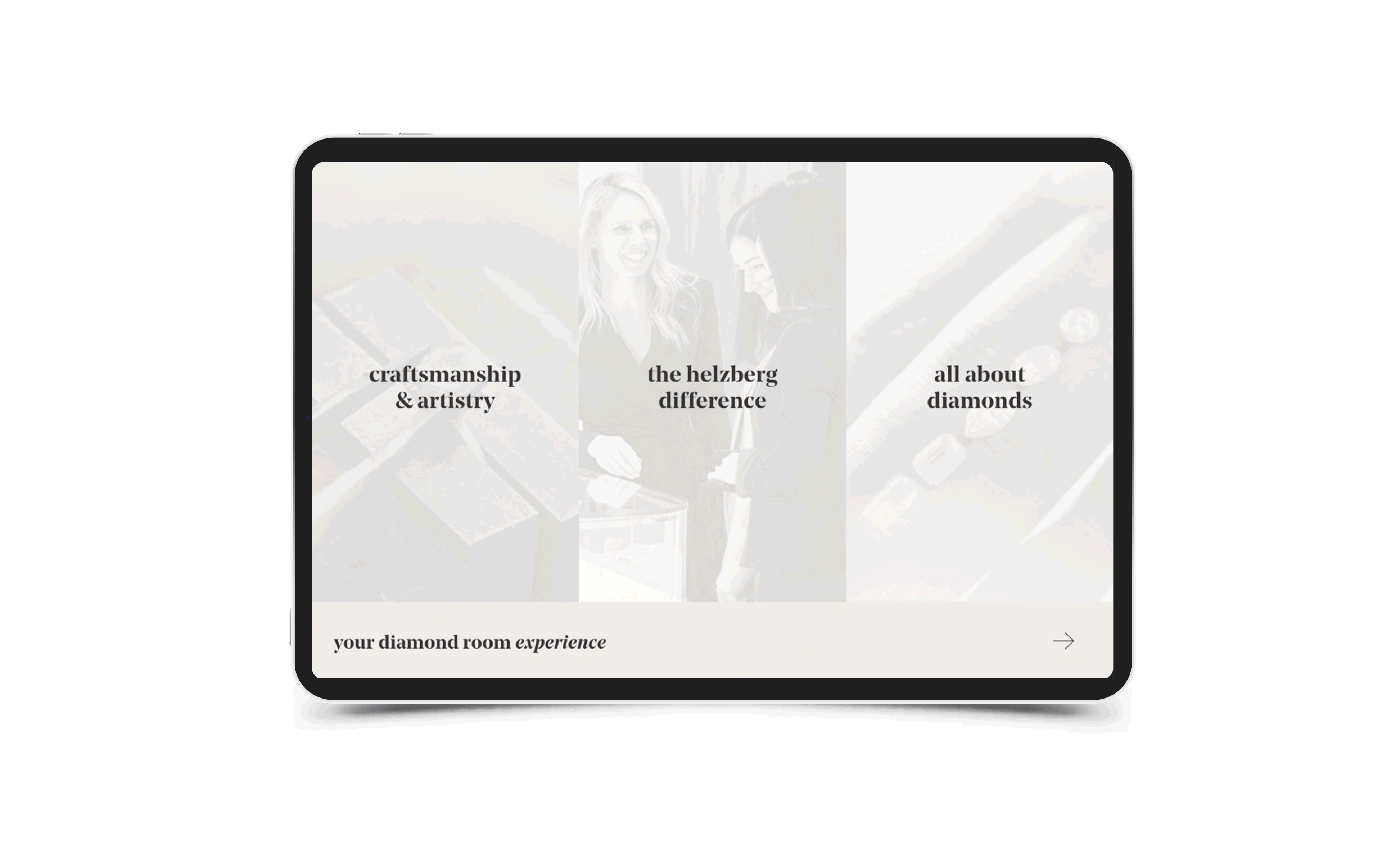 Before Helzberg’s brand refresh, I led the design of the Diamond Room experience — an interactive, in-store educational tool that helps associates guide customers through diamonds, metals, and Helzberg’s service offerings. I owned the project from concept through design execution, then handed it off to the production partner for build and implementation.